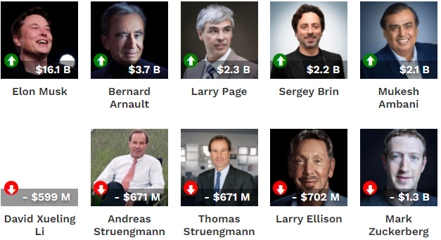 Top 10 tỷ phú ngày 22/12/2021 tăng/giảm tài sản ròng nhiều nhất.
